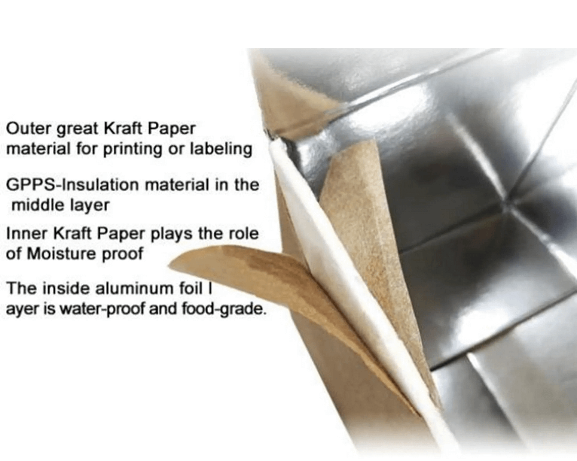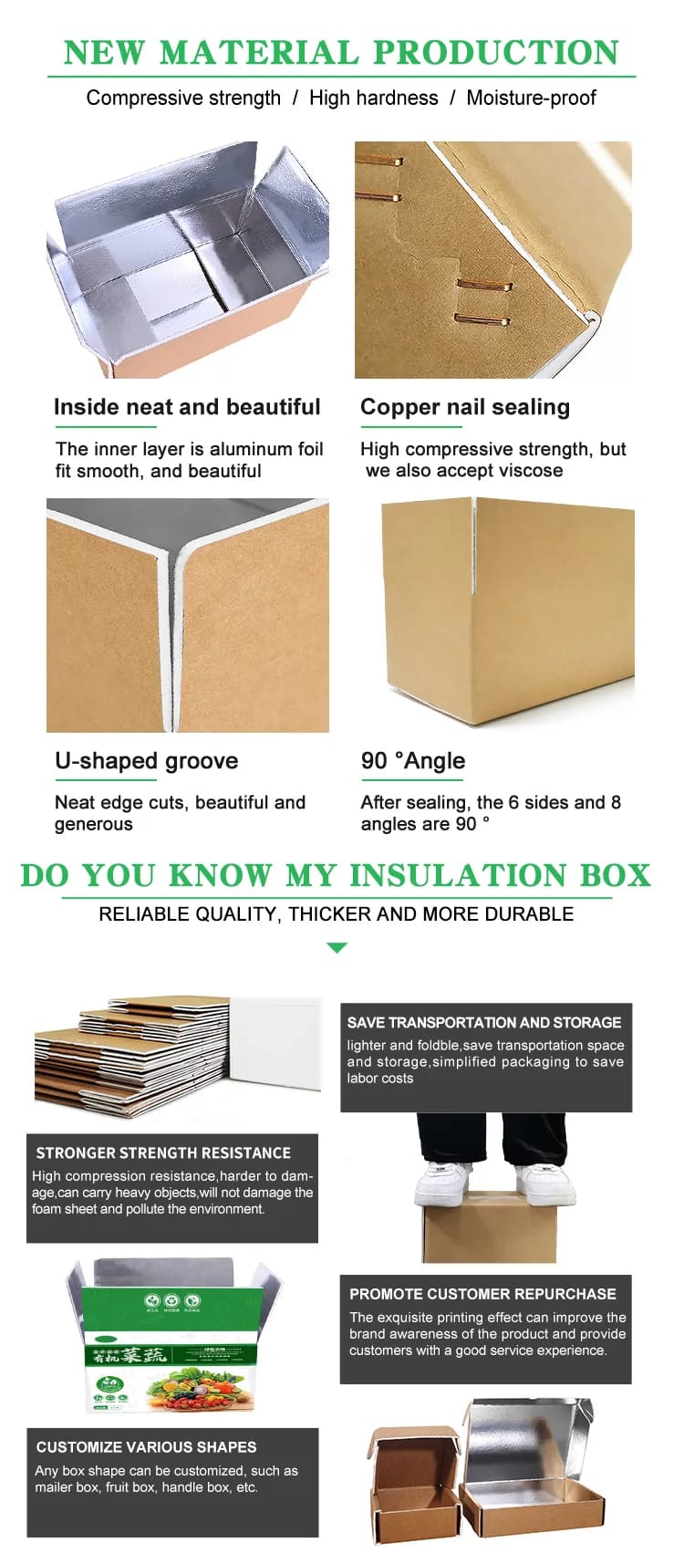 Thermal Insulation foam box is made of insulation foam board,which is processed from high quality aluminium film paper,XPS insulation layer and kraft paper after high-tech lamination. It's good freshness, waterproof, moisture-proof, easy to fold, save logistics costs and storage space. The perfect alternative to traditional styrofoam foam boxes.